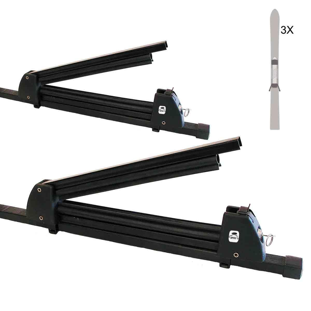 Uchwyt narciarski Amos Ski-Lock 3, przeznaczony do przewozu 3 par nart, lub 2 desek snowboardowych, montowany na bagażniku bazowym. Bardzo wytrzymała konstrukcja uchwytu gwarantuje długą i bezawaryjną pracę nawet w bardzo niskich temperaturach.